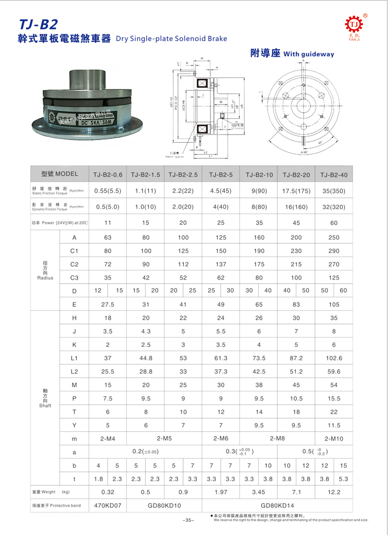 天機(jī)傳動(dòng)單片式摩擦電磁制動(dòng)器(剎車器)由銜鐵(電樞板)、定子、板型彈片、磁性線圈、來令片、鋁導(dǎo)座等元件構(gòu)成,統(tǒng)一使用DC24V,標(biāo)準(zhǔn)規(guī)格0.6-40KG。