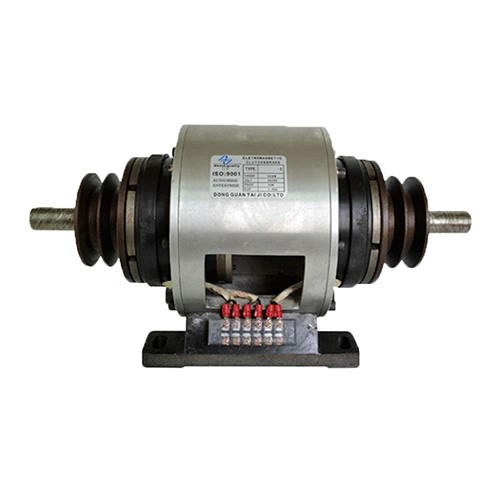 電磁離合剎車器使機(jī)械中的運(yùn)動件停止或減速的機(jī)械零件。俗稱剎車、閘。電磁剎車器主要由制動架、制動件和操縱裝置等組成。有些電磁剎車器還裝有制動件間隙的自動調(diào)整裝置。為了減小制動力矩和結(jié)構(gòu)尺寸,電磁剎車器通常裝在設(shè)備的高速軸上,但對安全性要求較高的大型設(shè)備(如礦井提升機(jī)、電梯等)則應(yīng)裝在靠近設(shè)備工作部分的低速軸上。