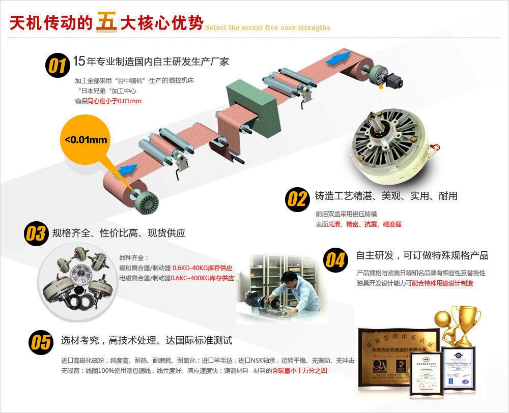 有些電磁制動器已標(biāo)準(zhǔn)化和系列化,并由專業(yè)工廠制造以供選用。它主要與系列電機配套。廣泛應(yīng)用于冶金、建筑、化工、食品、機床、舞臺、電梯、輪船、包裝等機械中,及在斷電時(防險)制動等場合。