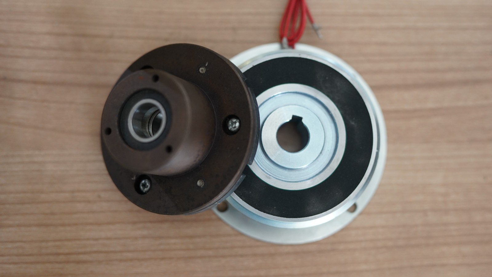 磁粉離合器將磁粉置于驅(qū)動(dòng)部分和從動(dòng)部分之間。離合器通電時(shí),磁粉處于凝聚狀態(tài),使離合器打開。離合器斷電時(shí),磁粉處于松散狀態(tài),所以離合器閉合。